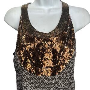 Tory Burch Maxi Dress Size 4 Brown Sleeveless Embellished Bronze Sequins