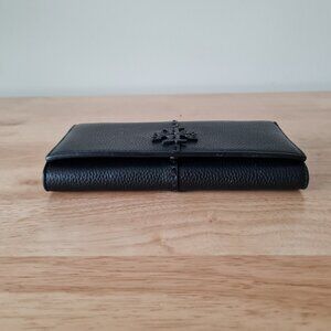 Tory Burch McGraw Envelope Wallet Black Pebbled Long Flap Luxury Designer Zip