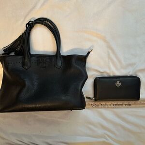 Tory Burch McGraw Slouchy Satchel Bag & Saffiano Leather Continental Zip Wallet SET