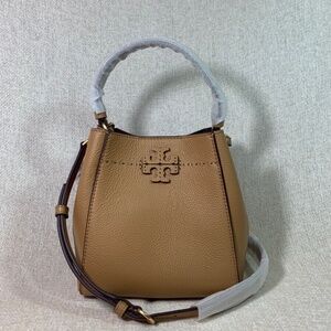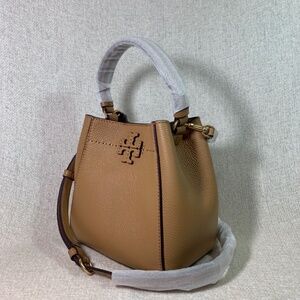 Tory Burch McGraw Tiramisu Tan Leather Small Bucket Tote/Crossbody Bag + Wallet