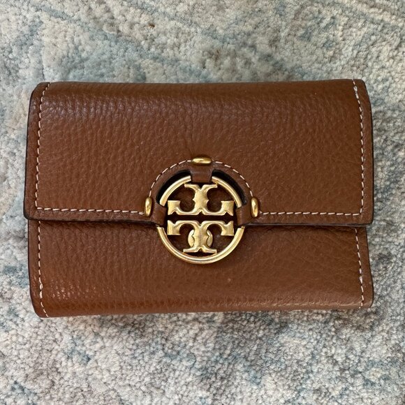 Tory Burch Medium Miller Trifold Pebbled Leather Wallet Light Umber