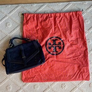 - Tory Burch 797 Medium satchel messenger bag - navy blue in colour with Gold tone hardware