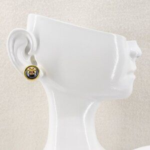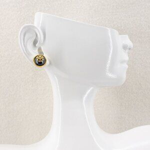 Elevate your look with these stunning Tory Burch earrings. The logo stud dome design exudes sophistication, while the post closure ensures they stay securely in place. Crafted from brass, these earrings are not only stylish but also durable. The round shape and main stone add a touch of elegance to any outfit. Perfect for any occasion, these earrings are a must-have for any jewelry collection. Sculptural logos crown the glossy cabochons rising from gilded stud earrings.