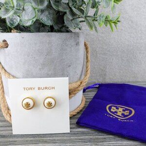Tory Burch Melodie Pearl Logo Stud Dome Earrings White/Gold OS