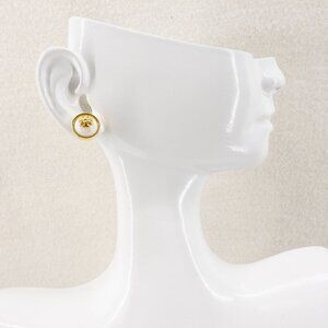 Elevate your look with these stunning Tory Burch earrings. The logo stud dome design exudes sophistication, while the post closure ensures they stay securely in place. Crafted from brass, these earrings are not only stylish but also durable. The round shape and main stone add a touch of elegance to any outfit. Perfect for any occasion, these earrings are a must-have for any jewelry collection. Sculptural logos crown the glossy cabochons rising from gilded stud earrings.