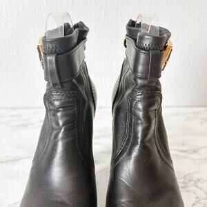 Tory Burch Melrose Black Leather Goldtone Buckle Zipper Bootie Women’s Size 6.5