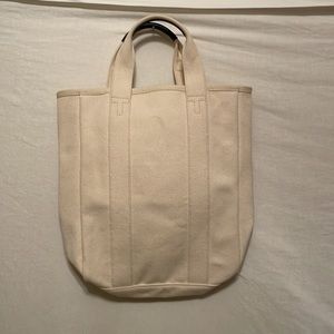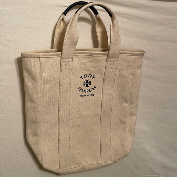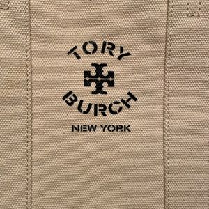Tory Burch Mercer St. Canvas Tote Bag in Cream Navy Leather Straps, New w/o Tags