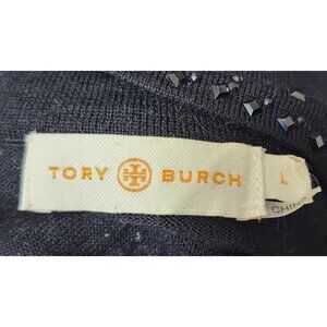 Tory Burch Merino Wool Beaded Tunic Top Black L Embellished V-Neck Long Sleeve