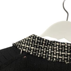 Tory Burch Merino Wool Black Knit Tweed Collar Polo Top Womens Large AS IS