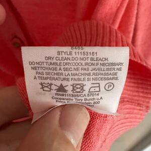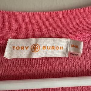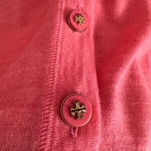 Tory Burch Merino Wool Cardigan Sweater Logo Button Coral Pink Size Medium