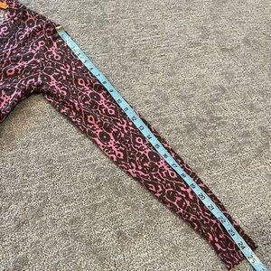 Tory Burch Merino Wool Cardigan Sweater, Pink and Brown Print, Logo Buttons, S