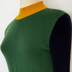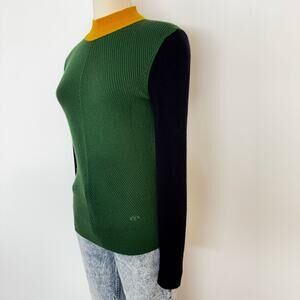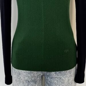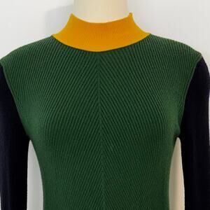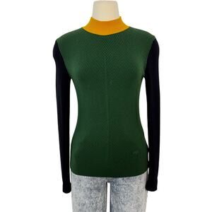 Tory Burch Merino Wool Mock Neck Sweater Pullover Long Sleeve Green Colorblock S