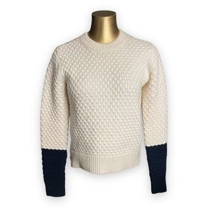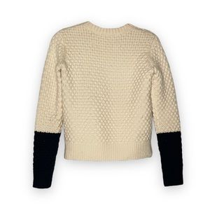 Tory Burch Merino Wool Sweater Contrast Sleeves Quilted Waffle Texture Knit XXS