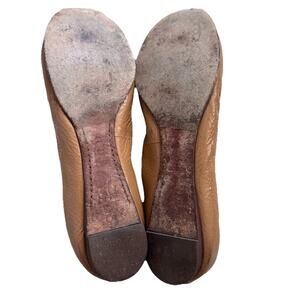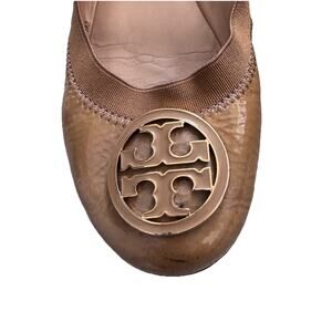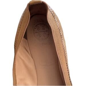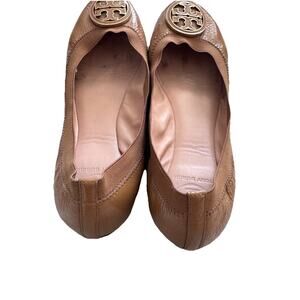 Great pair of Tory Burch Logo Flats in women's size 8.5 are a stylish and comfortable choice for casual, business, or travel occasions. Made from leather with a cushioned and lightweight design, these beige ballet flats feature the iconic Tory Burch logo, adding a touch of preppy elegance to any outfit. Perfect for women who appreciate both fashion and comfort, these flats are a versatile and timeless addition to any wardrobe. some minor wear, see photos.