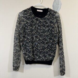 Tory Burch Metallic Floral Merino Wool Sweater Size M Long Sheer Sleeve