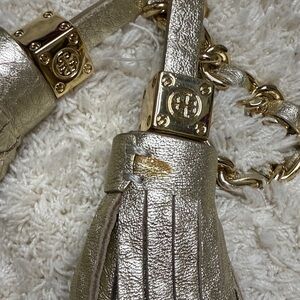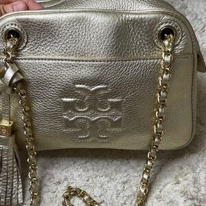 Tory Burch Metallic Gold Leather Thea Chain Crossbody