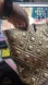 Chic metallic gold tote with quilted pattern. Features elegant chain straps. Ideal for stylish outings.