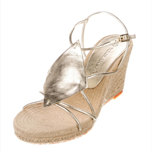 Tory Burch Metallic Gold Wedge Espadrille Sandals size 7.5