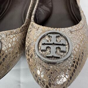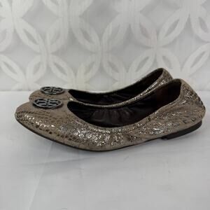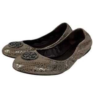 Tory Burch Metallic Gray Textured Suede Heidi Scrunch Ballet Flats Size 8