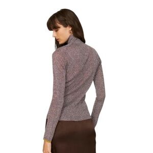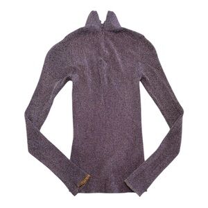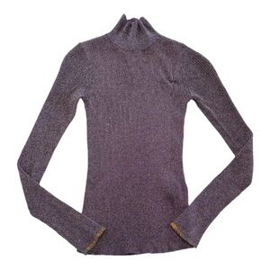 Tory Burch Metallic Knit Turtleneck Top Long Sleeves Size Large