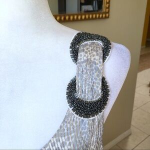 Tory Burch Metallic Leaf Print Bay Dress • Leaf print is a color gray• Gild metallic detail• Back zipper closure• Fully lined• Lightweight material• NWT E003
