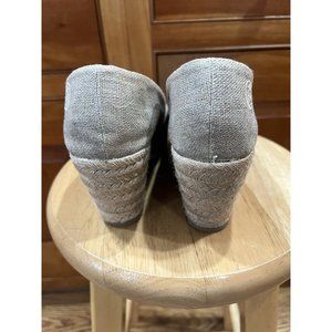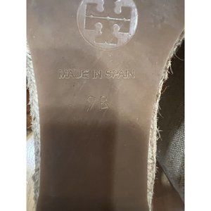 Tory Burch Metallic Silver Shimmer Canvas Espadrille Wedge Sz 9