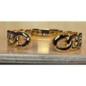 Tory Burch Milgrain Logo Red & Gold Chain Link Cuff Bangle NWOT