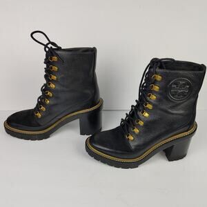 Tory Burch Miller 95mm Lug Sole Lace Up Bootie Black Hiking Boot Size 9.5