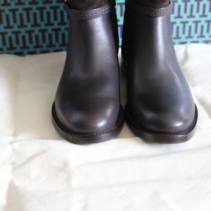 Tory Burch Miller Brown Leather Logo Knee High Tall Riding Boots