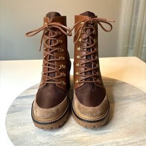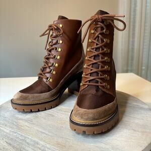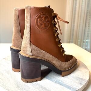 Tory Burch Miller Brown Suede Leather Lug Sole Boots Combat Boots US Size 7.5