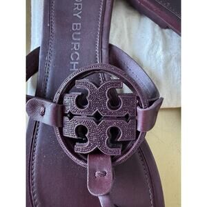 Tory Burch Miller Burgandy Leather Crystal Sandals 9