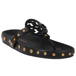 From the Miller Cloud Collection. Composed of rich leather these thong sandals are adorned with polished coin studs. This slip-on pair is finished with Tory Burch's Double T-logo.