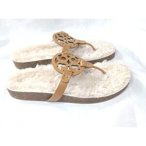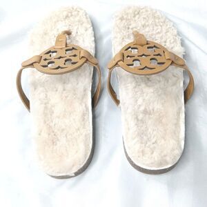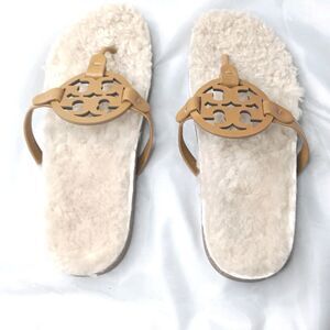 Tory Burch Miller Cloud Shearling Sandals Women's Size 10 Caramel Buttermilk