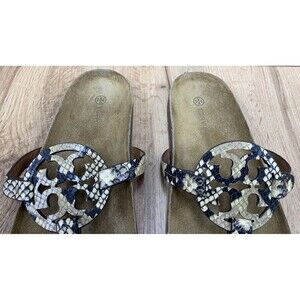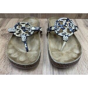 Tory Burch Miller Cloud Snake Print Thong Sandals Shoes Cork Flip Flops Size 11