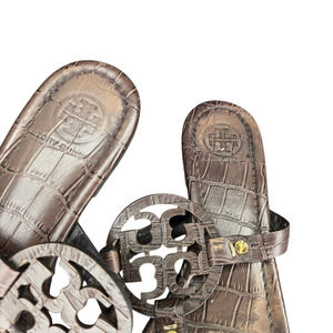 Tory Burch Miller Crocodile Embossed Brown Leather Sandals Size: 9.5