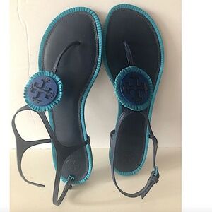 ory Burch infuses the well-loved Miller sandal with a hint of bohemian spirit, in the form of fringe trim that traces the signature logo design.