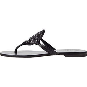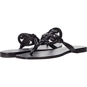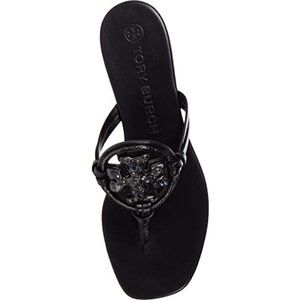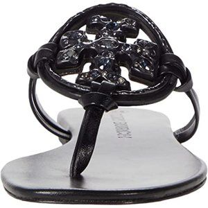 Tory Burch Miller Jeweled Embellished Crystal Leather Thong Sandals Black Sz 5.5