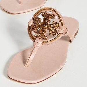 Tory Burch Miller Jeweled Leather Thong Sandals Meadowsweet Peachy Pink