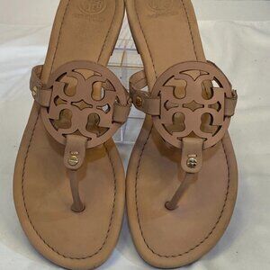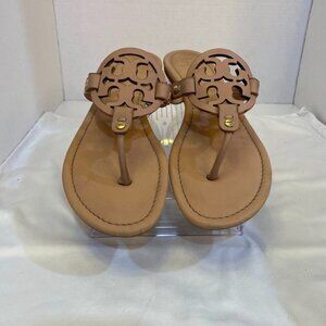 Tory Burch Miller sandals, nude tan thong, logo leather sandal, women’s 11