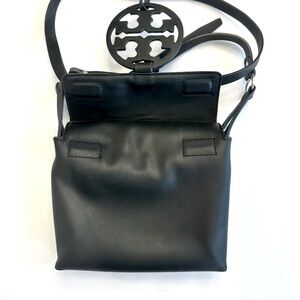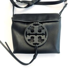 Tory Burch Miller Logo Black Leather Flap Crossbody or shoulder Bag 50769