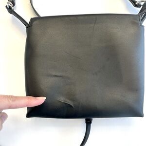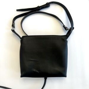 Beautiful black leather Miller logo bag from Tory Burch. Features; • Genuine leather • Single Adjustable Shoulder Strap • Canvas Lining & Dual Interior Pockets • interior zipper & slip pocket • Snap Closure at Front Approximate: 7" H x 8" W x 2.5" D *This rare Tory bag has two small creases on the back, as pictured and a little dirt/dust on the interior pocket. It also has a small tear to one part of the Tory leather logo that doesn’t go all the way through and is not noticeable when wearing, as pictured. This bag is in otherwise great condition, and makes the perfect neutral Crossbody for the fall and winter seasons!