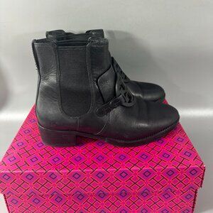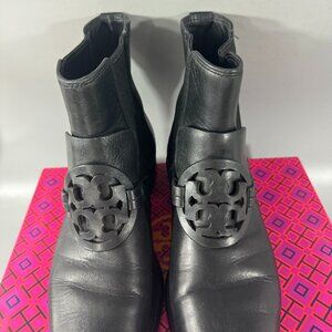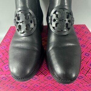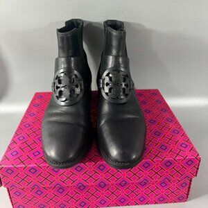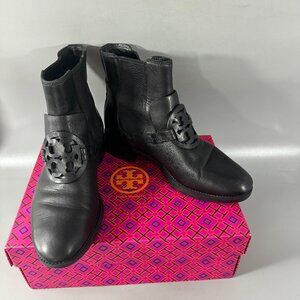 Tory Burch Miller Logo Medallion Black Leather Booties, Size 7