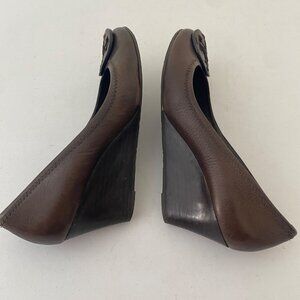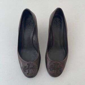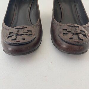 Tory Burch Miller Logo Wedge Heels Shoes Leather Brown