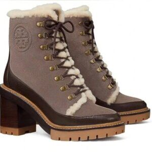 Tory Burch Miller Lug Sole Ankle Boot Shearling Coconut Brown 9