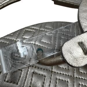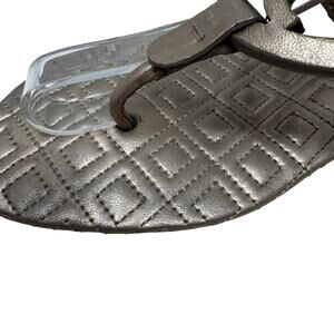 Tory Burch Miller Marion sandals, quilted leather sandals, silver logo sandals, metallic flip flops, designer thong sandals, resort wear, spring summer shoes, minimalist luxury, preppy sandals, beach ready Tori Birch Torry