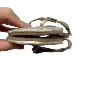 •Light wear/darkening to metallic finish on footbed especially near toes/heels, creasing on straps, small scuffs on toes. Light wear to outsoles. Overall in very good preowned condition.