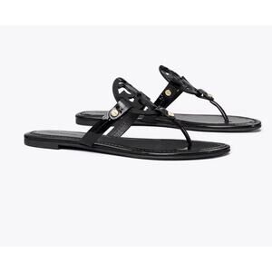Tory Burch Miller Patent Leather Thong Sandals Black Sz 8.5