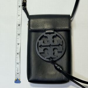 Tory Burch Miller Phone Crossbody Bag Womens Black Leather Logo Medallion Tassel