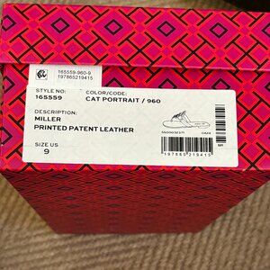 Tory Burch Miller Printed Patent Sandal Cat Portrait Grey Gray