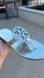 ✨ Iconic Tory Burch “Miller” sandals in stunning metallic silver.